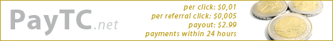 Gains : 0,01 $ / clic - Paiement : dès 10 $ par Alertpay Parrainage : 0,01 $ / clic / filleul - Bonus : 0,05 $ à l'inscription [ Accès direct au site ] [ Accès à la fiche du site ] |